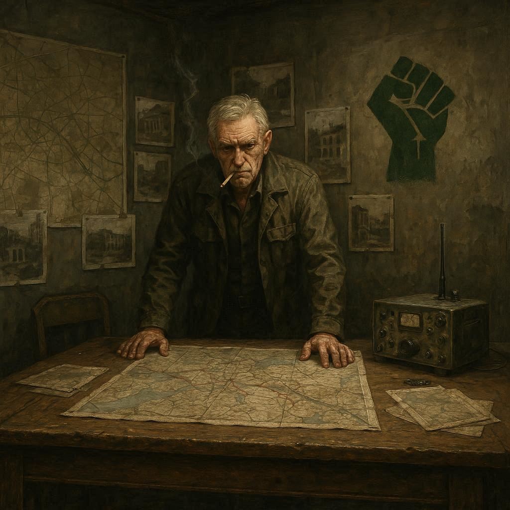 Der Plan nahm Gestalt an. Ein Ablenkungsfeuer im Osten würde die Außenposten binden; ein kleiner Kernteam würde über einen alten Versorgungstunnel in den Unterbau des Hauptquartiers eindringen. Ziel: die Datenbank, die Namen, die Verbindungen — und ein Akt, der die Partei öffentlich blamieren sollte: Dokumente, Tonaufnahmen, Beweise. Kein Massaker, kein Machismo. Ein Schlag, der den Apparat entblößen sollte.