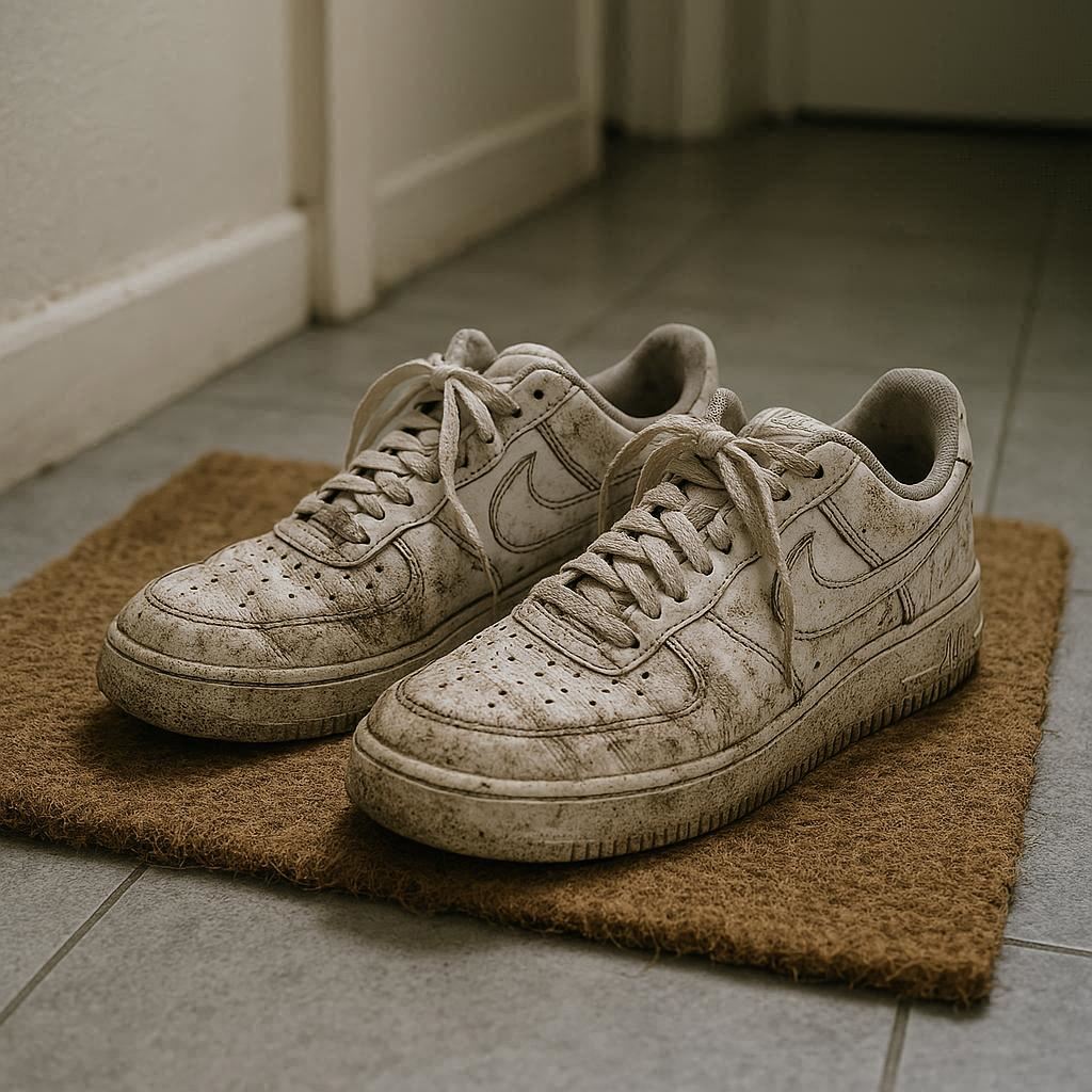 Wir fuhren zu dem kleinen Park und liefen eine große Runde. Dabei plauderten wir über alles Mögliche, Smalltalk, über die Webseite, den Fetisch, Erfahrungen und so weiter. Es war typisches Herbstwetter, zwar regnete es nicht, aber der Boden war nass, feucht, die Schuhe wurden entsprechend schmutzig. Nach einer Stunde gingen wir zum Auto zurück und fuhren zu mir. Ich parkte hinten auf dem Hof und wir gingen über den Hintereingang herein. Meine Wohnung lag in der zweiten Etage und schon in der ersten Etage fing Felix an, breit zu grinsen. Auf der letzten Zwischenetage blieb er plötzlich stehen. Er schaute auf seine dreckigen Air Force, schaute danach mich an und sagte leise: „Ich will den ganzen Schmutz nicht im ganzen Hausflur verteilen.” Dann schaute er mich erwartungsvoll an.
