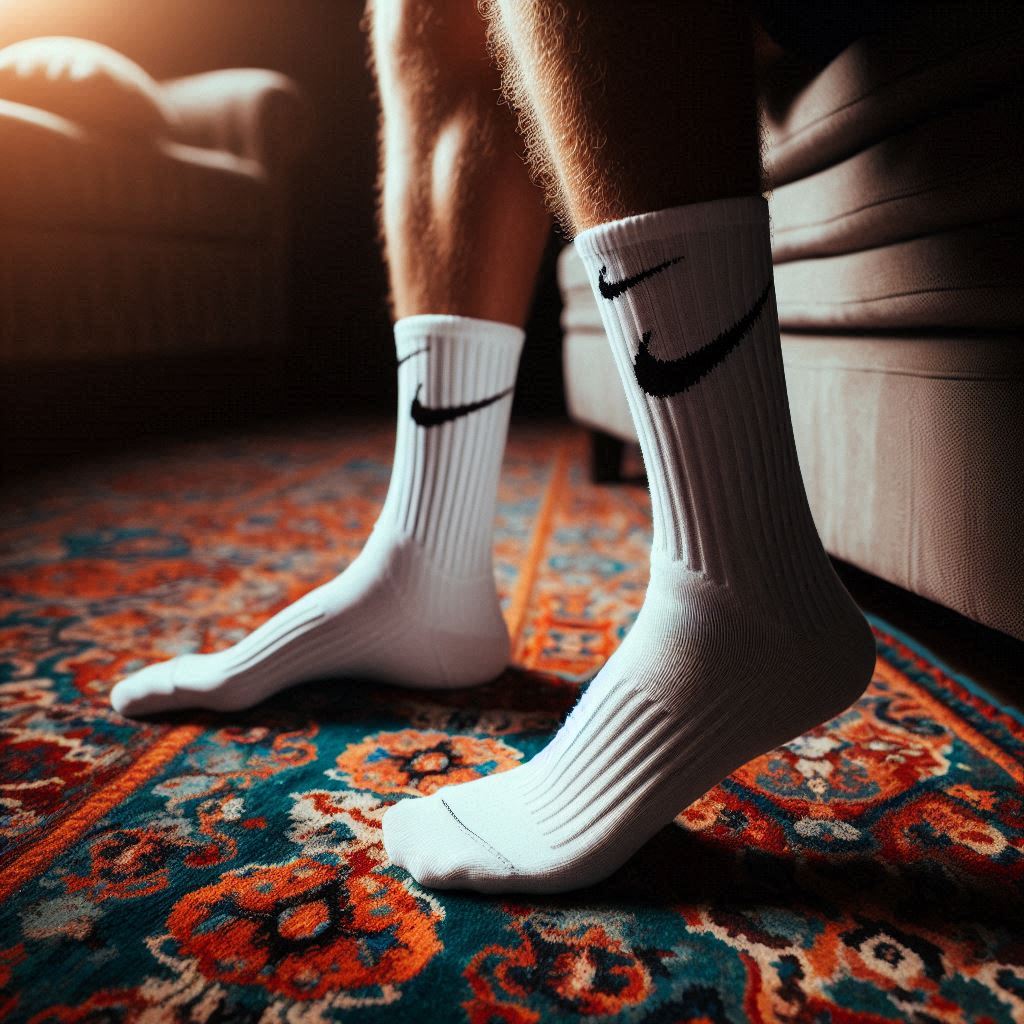 Er trug weiße Nikesocken und er hatte nicht untertrieben. Die Socken waren wirklich feucht geschwitzt und rochen intensiv. Aber nicht ekelig. „Ahhhh das tut gut, deinen kühlen Atem an meinen nassen Socken zu spüren”, sagte Felix, sichtlich erleichtert, von seinen Schuhen befreit zu sein.